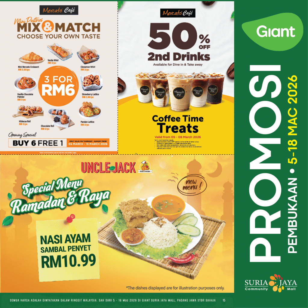 To our Muslim friends, you may observe your prayers at the respective male and female prayer rooms during your trips to our mall, located at Basement.Â